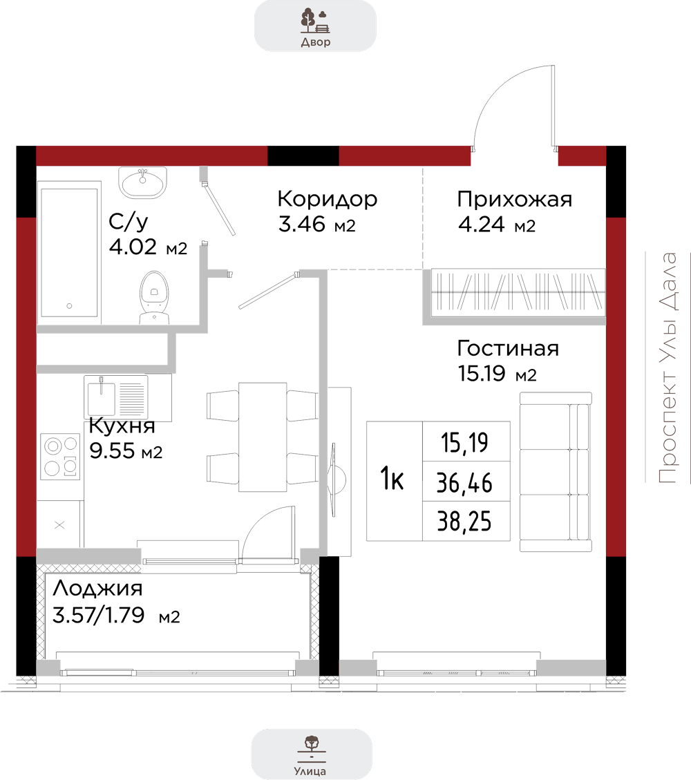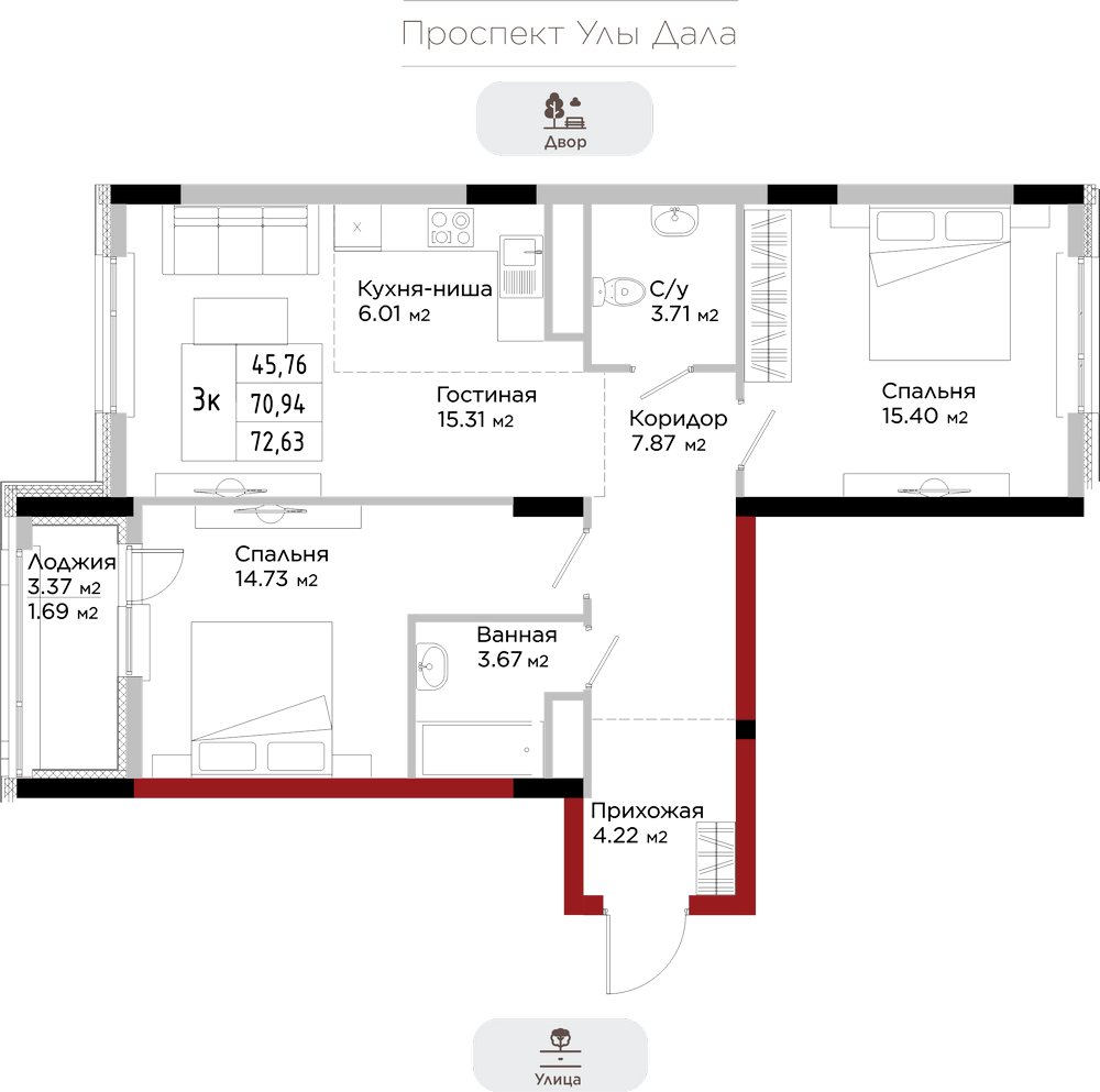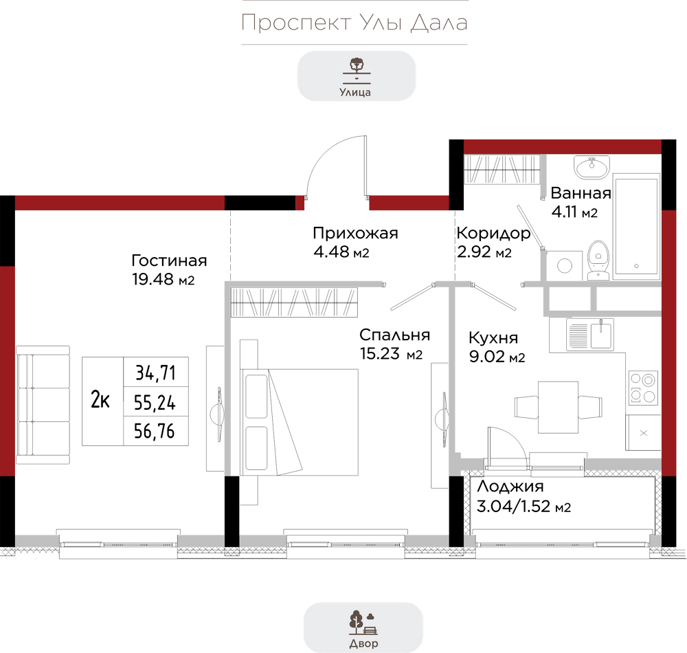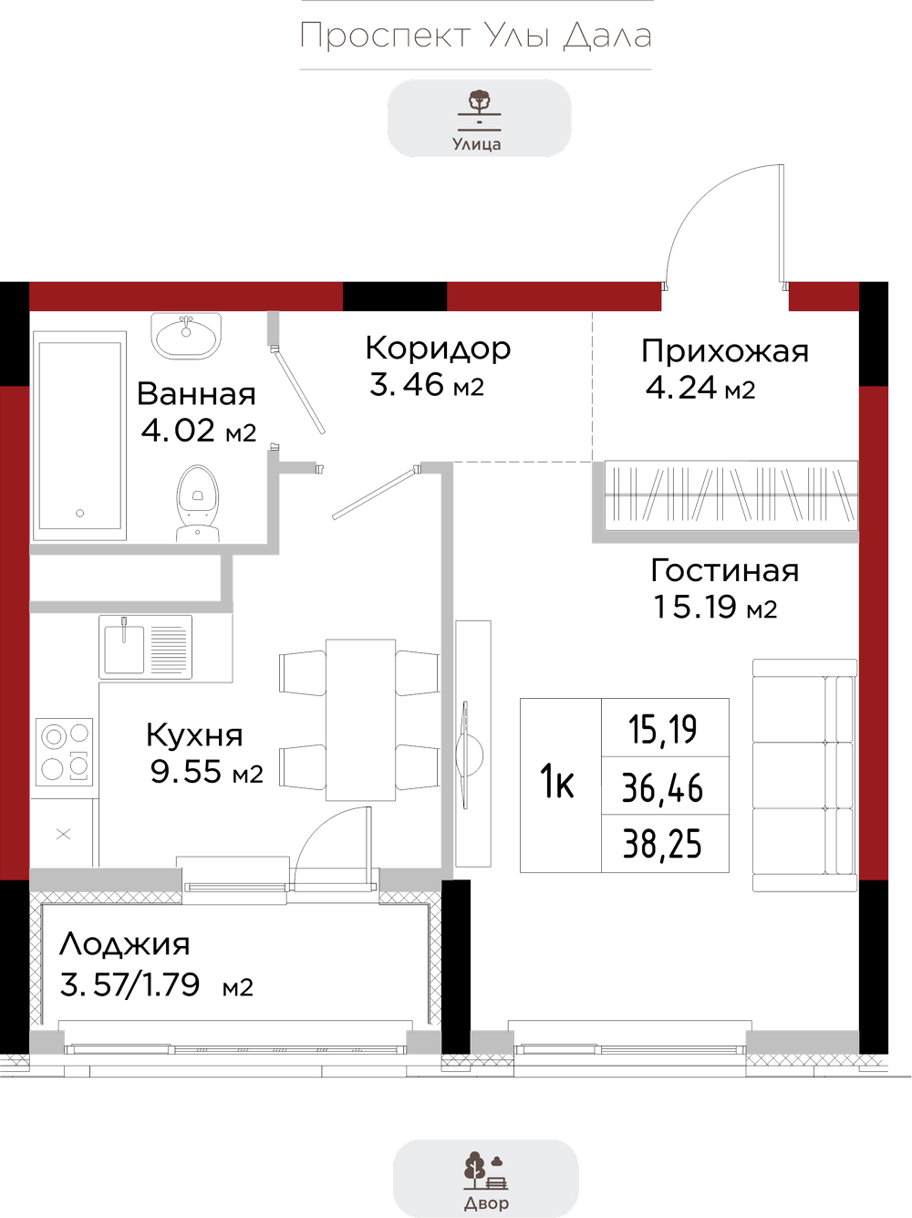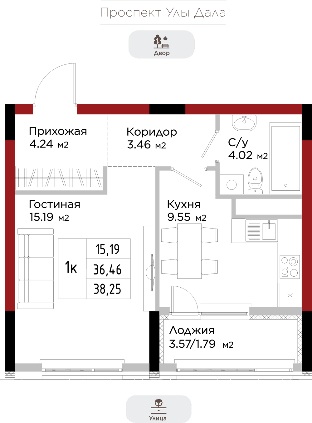 Преимущества коммерции в данном квартале - это ее универсальность и доступность для транспорта и пешеходов. Жилой квартал расположен на первой линии проспекта Улы Дала, который выделяет коммерческие помещения не только отличной локацией, но и особенными характеристиками.