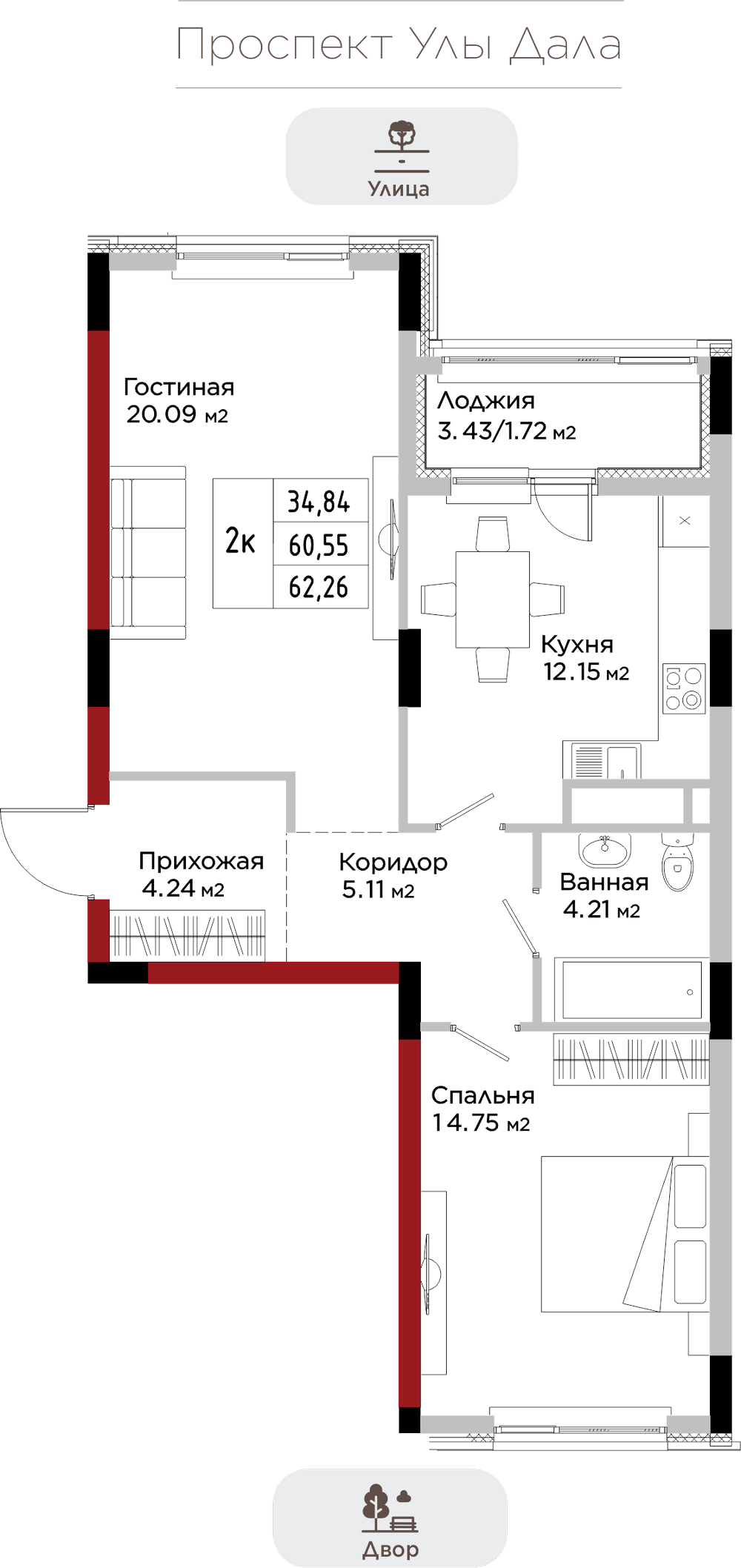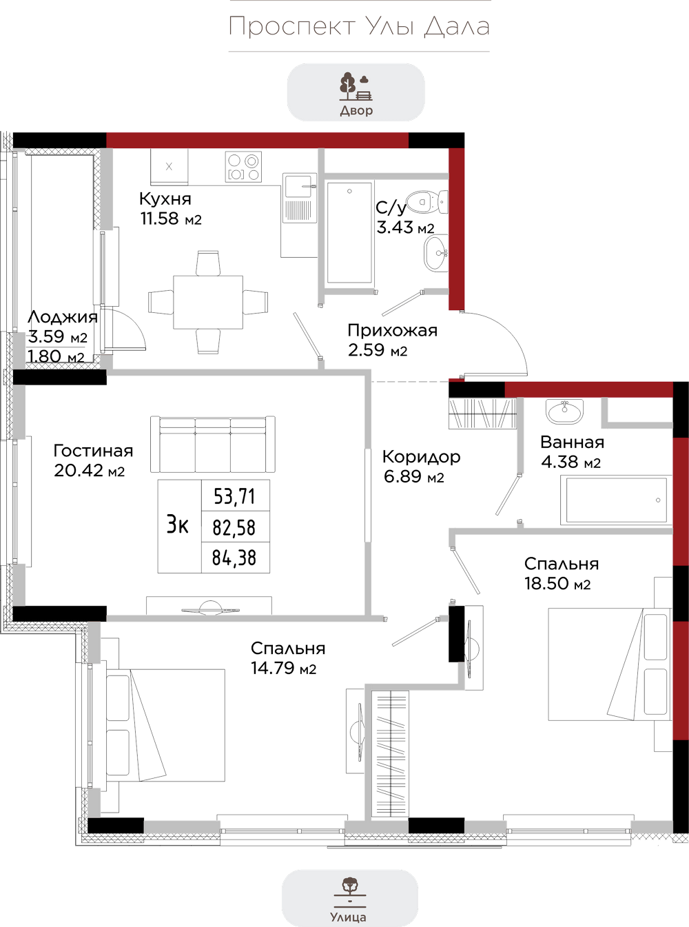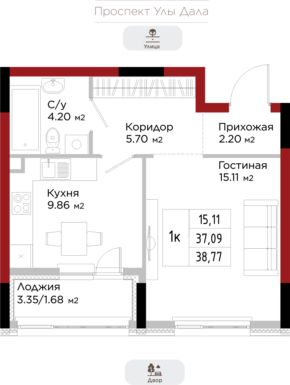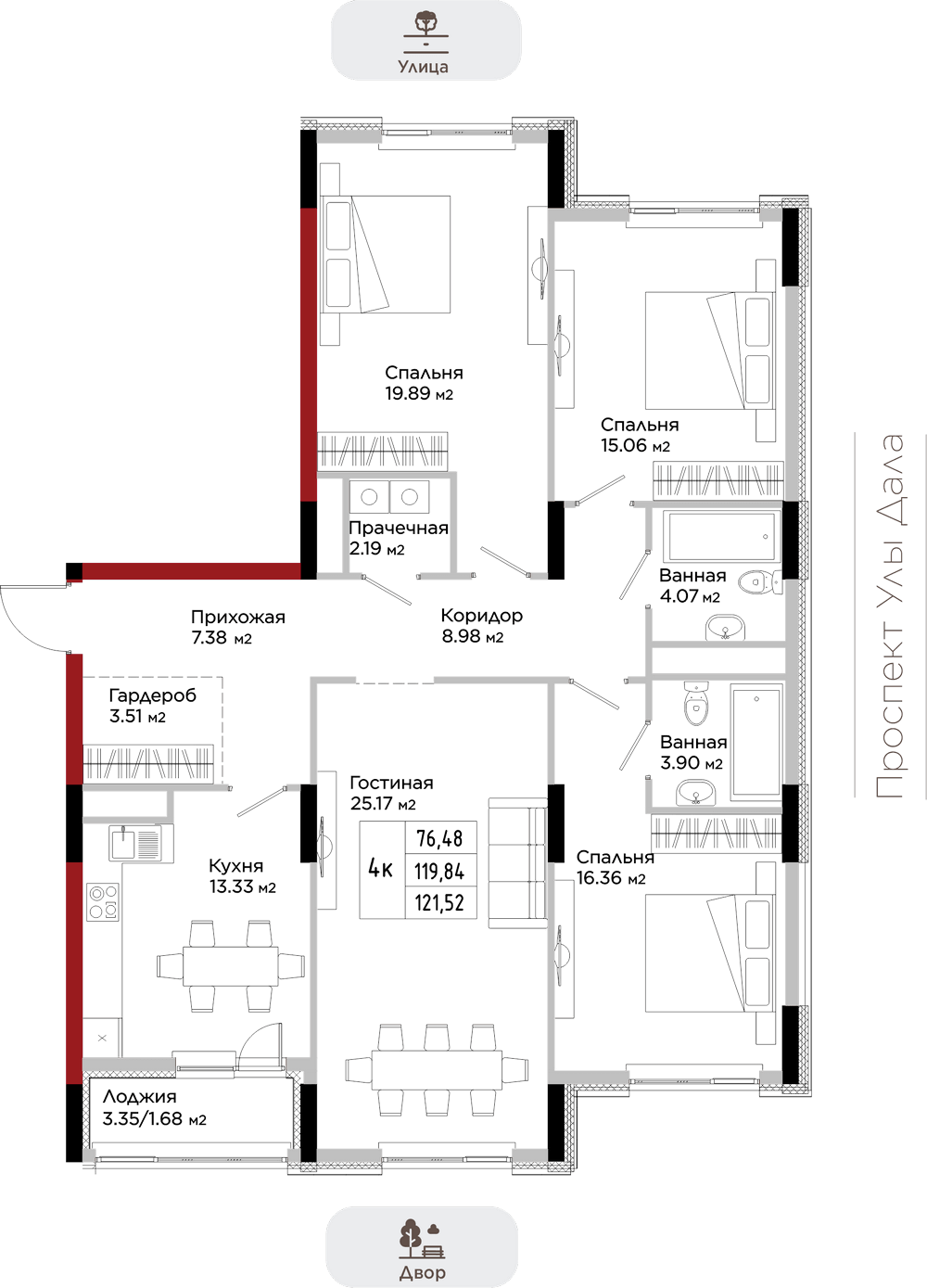 Преимущества коммерции в данном квартале - это ее универсальность и доступность для транспорта и пешеходов. Жилой квартал расположен на первой линии проспекта Улы Дала, который выделяет коммерческие помещения не только отличной локацией, но и особенными характеристиками.