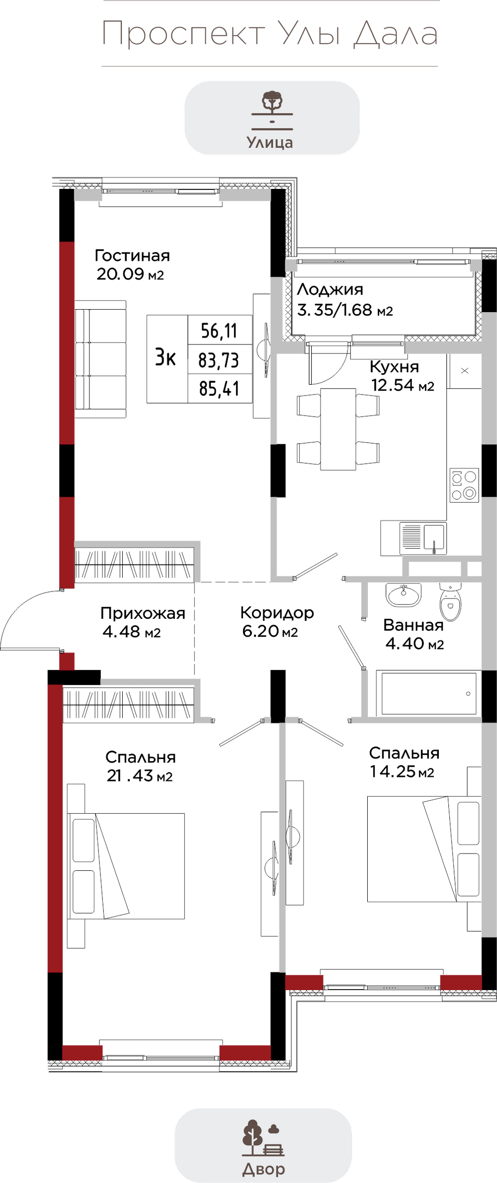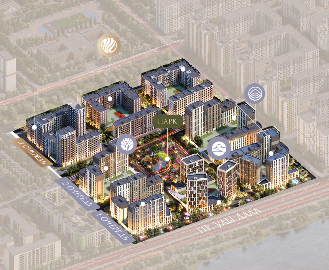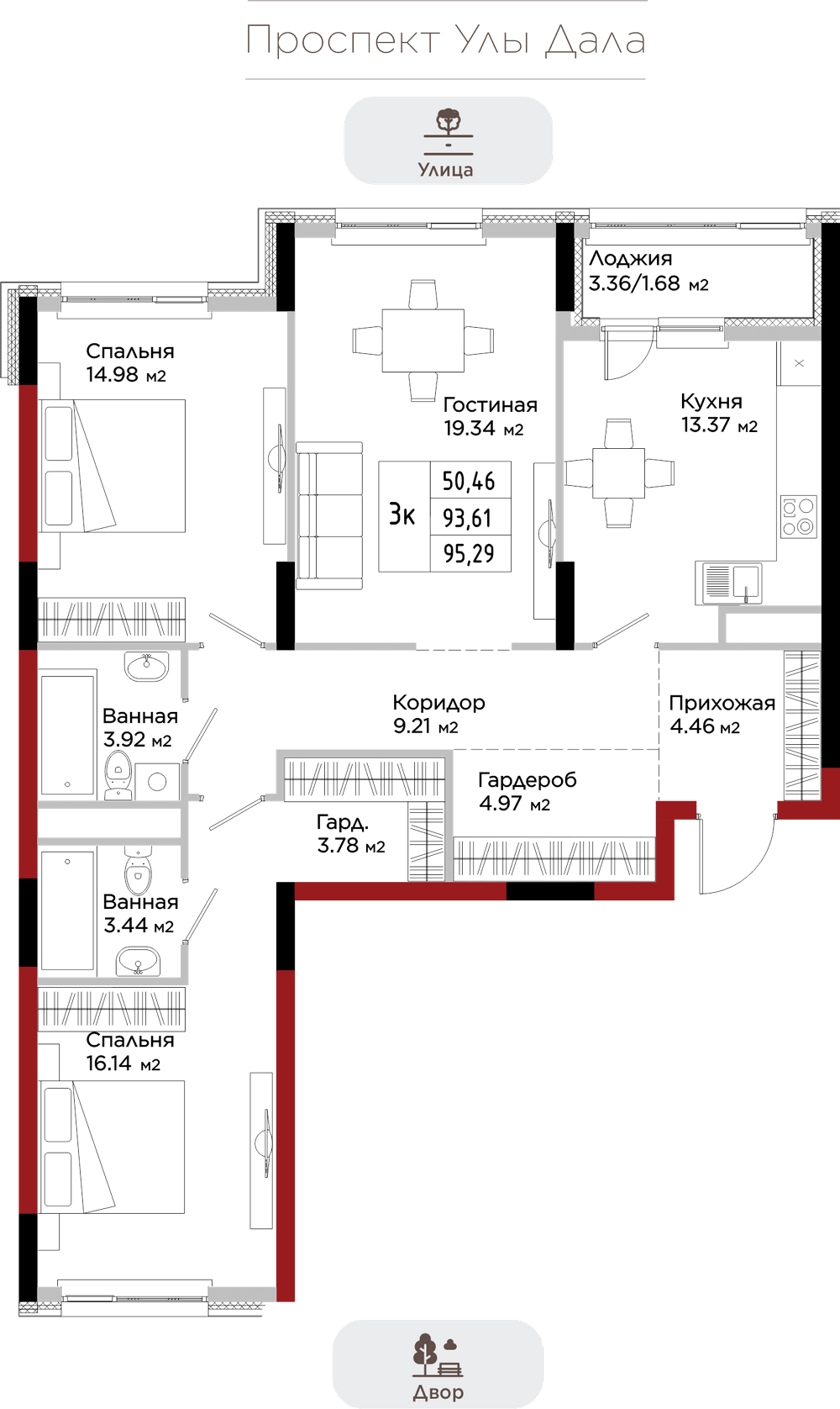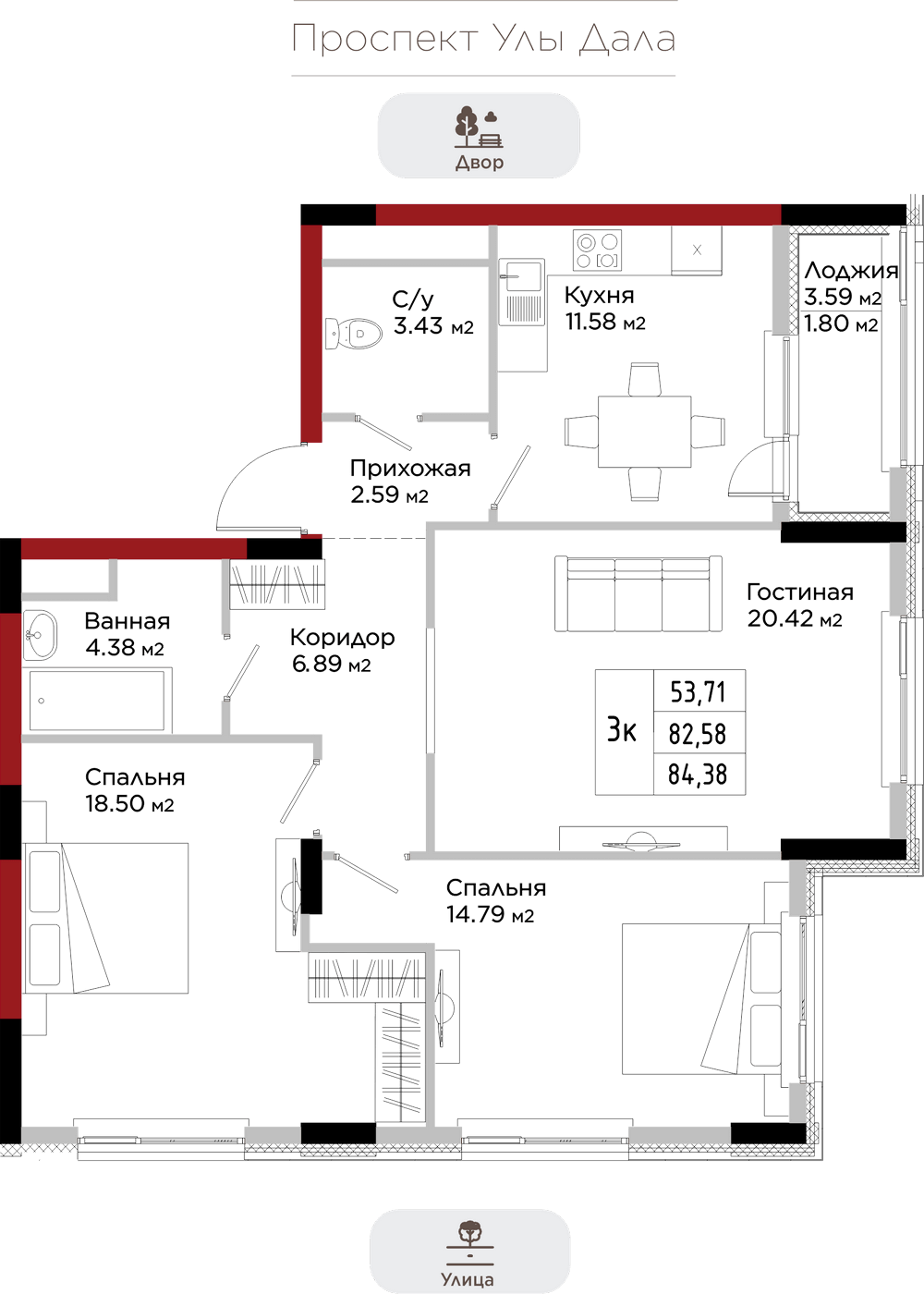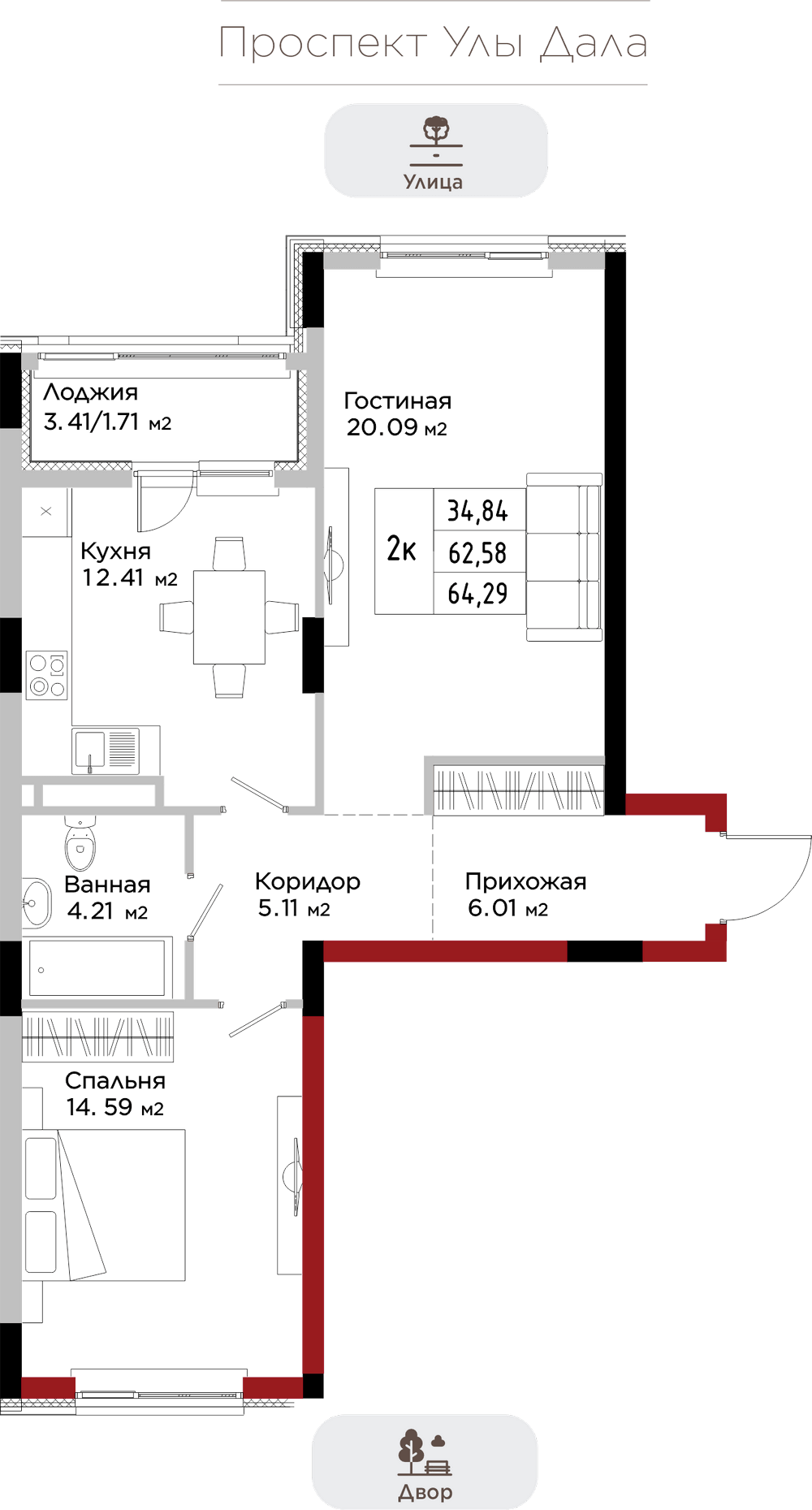 Преимущества коммерции в данном квартале - это ее универсальность и доступность для транспорта и пешеходов. Жилой квартал расположен на первой линии проспекта Улы Дала, который выделяет коммерческие помещения не только отличной локацией, но и особенными характеристиками.