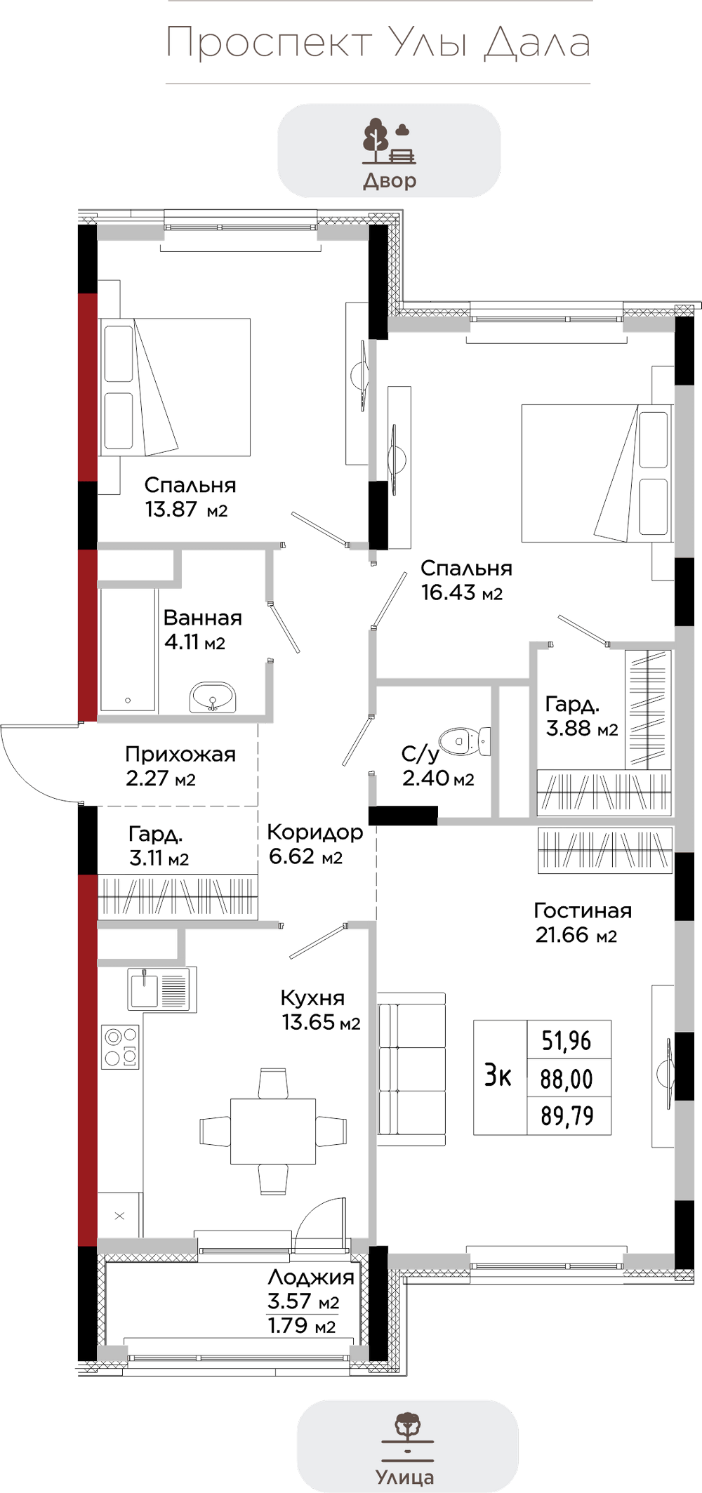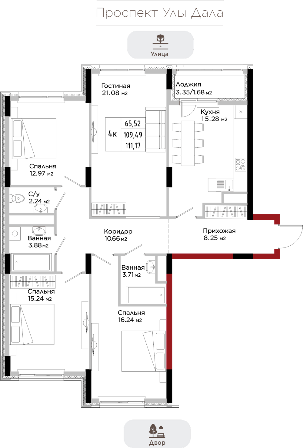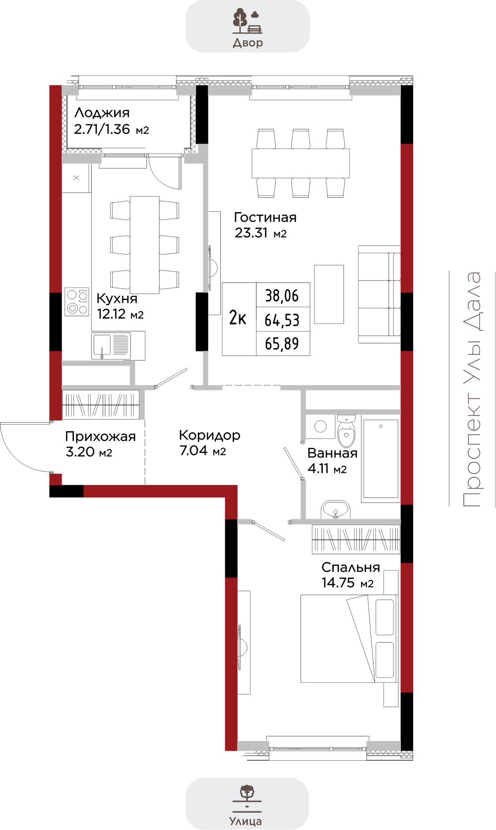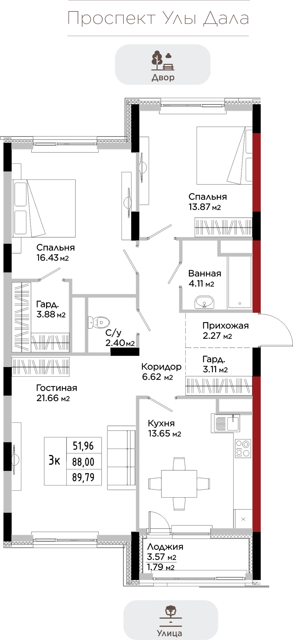 Преимущества коммерции в данном квартале - это ее универсальность и доступность для транспорта и пешеходов. Жилой квартал расположен на первой линии проспекта Улы Дала, который выделяет коммерческие помещения не только отличной локацией, но и особенными характеристиками.