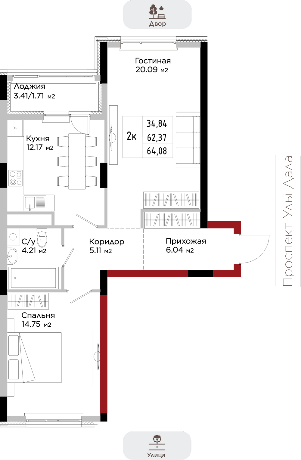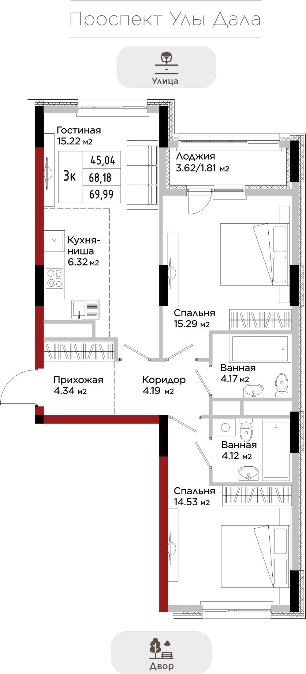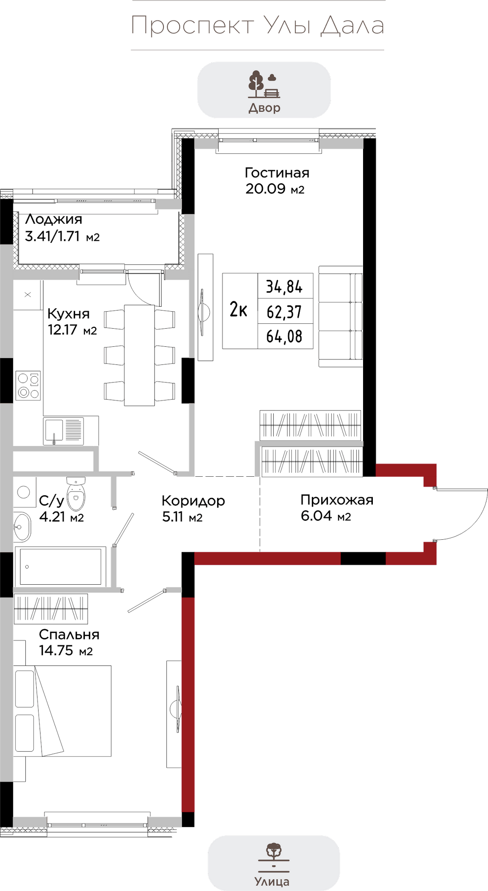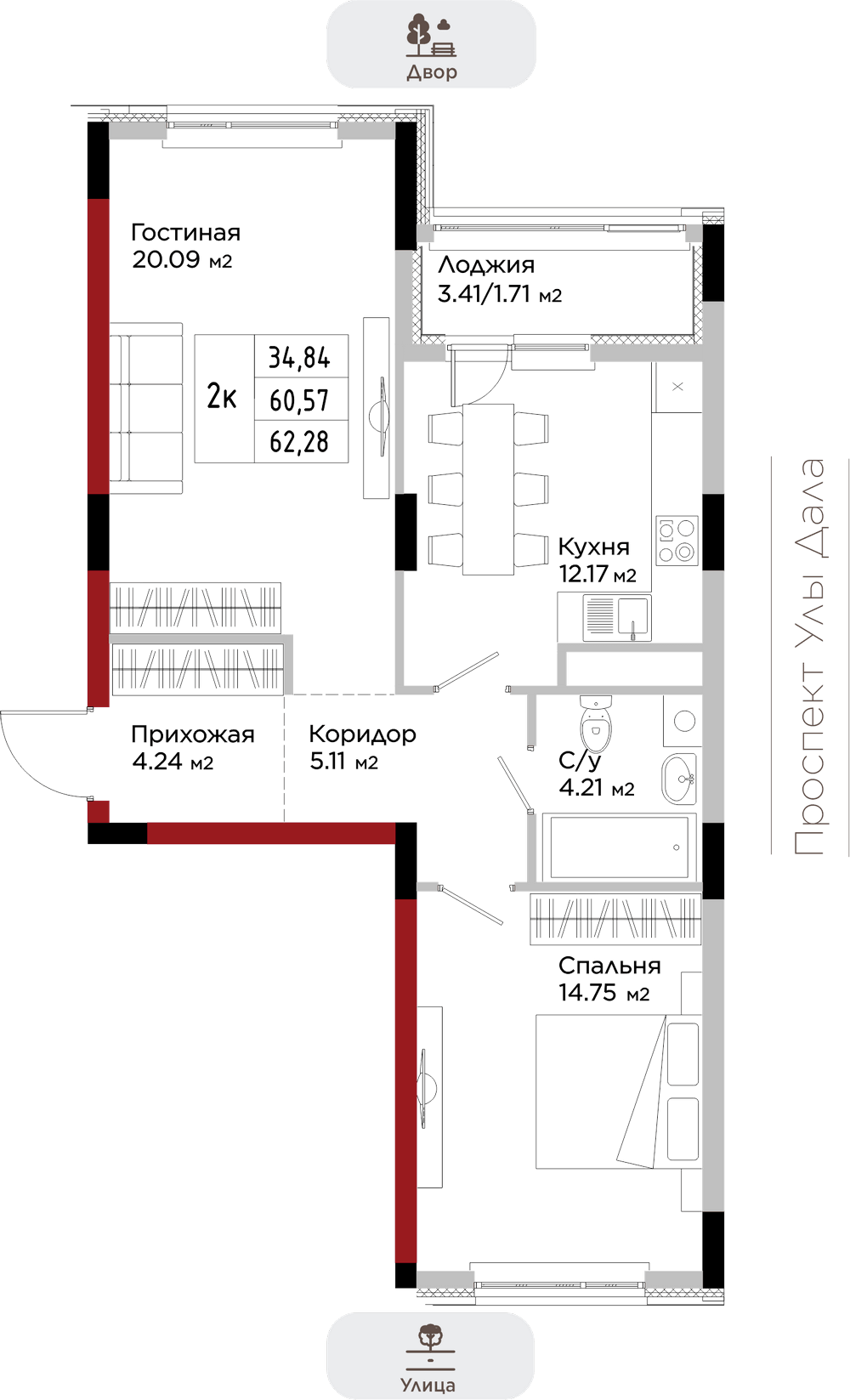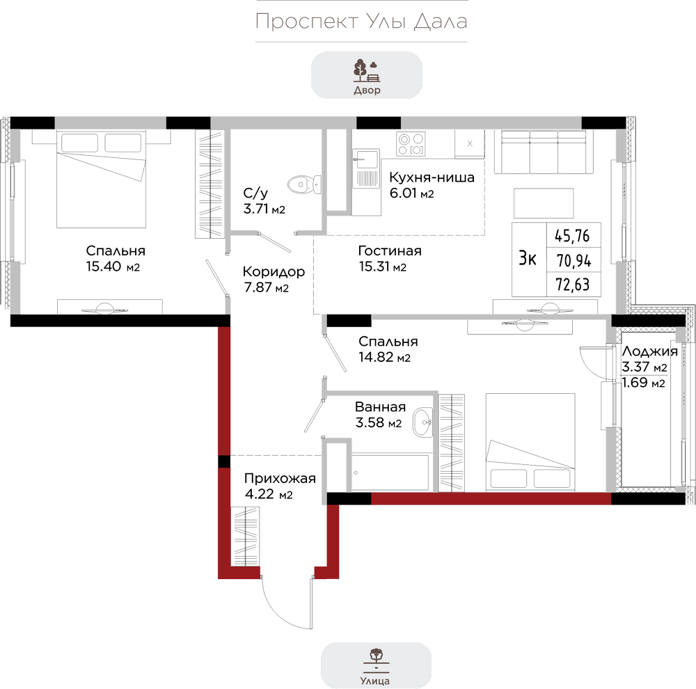 Преимущества коммерции в данном квартале - это ее универсальность и доступность для транспорта и пешеходов. Жилой квартал расположен на первой линии проспекта Улы Дала, который выделяет коммерческие помещения не только отличной локацией, но и особенными характеристиками.